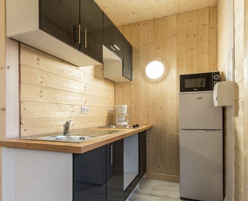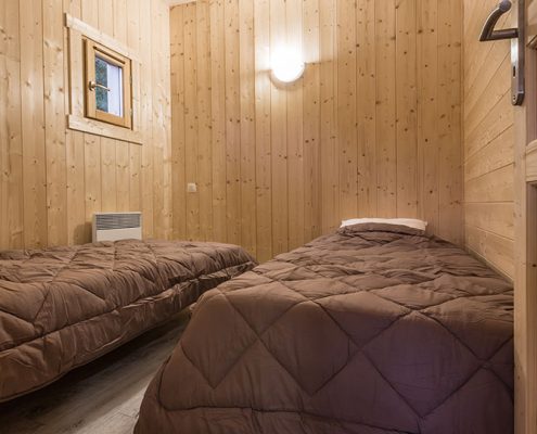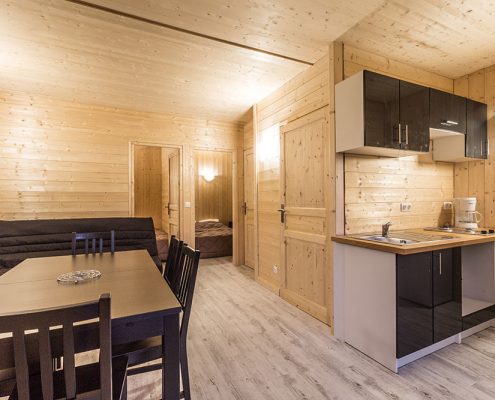 Chalet cosy : Parfait pour les couples ou les petites familles, ce chalet accueillant peut héberger jusqu’à 4 personnes. Il dispose d’une chambre douillette et d’un coin nuit, ainsi qu’une kitchenette pour préparer vos repas. Sa petite terrasse vous permettra de profiter du cadre naturel environnant.